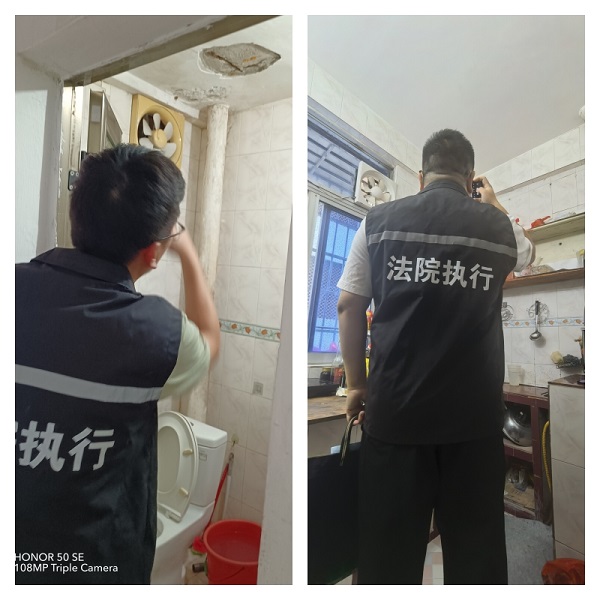 “漏水既然在你家漏的,那必须要拆开你家的地板,找到漏水源头,重新加固防水层。” “不就是一些漏水,让师傅在你家天花板打多点防水胶就行......至于为了这点小事告我吗,还要把我银行卡冻结了?” “只在我家动工,他是省事了,但这样治标不治本,过不了多久又会漏水。” …… 一见面,双方便争论的不可开交,“气氛”瞬间升级。似乎距离肢体冲突只有一步之遥。 见状,伍鹏会迅速把两人分开,采取“背靠背”方式安抚两人情绪。 伍鹏会敏锐地从邓叔的话中察觉到,邓叔似乎因李姨起诉他的事始终耿耿于怀,或许其不积极补漏的原因也有斗气成分所在。 为了让邓叔心甘情愿地承担补漏责任,伍鹏会没有急着说话,转而带着邓叔到李姨家中的客厅、卫生间、阳台等区域查看漏水情况。 只见李姨家中大片墙壁剥落、发黑发霉,还弥漫着一股恶臭味,家中部分设施更是被迫用防水塑料布覆盖住。  李姨家中漏水情况 听着伍鹏会的话,看着眼前的墙壁现状,邓叔再也没了之前的“火气”。他沉默了。 眼见邓叔起了反省之心,伍鹏会抓紧劝说道,“你看,换作是你八年来住在这样的房子里,成日提心吊胆,你也没个好觉睡吧?咱们可要将心比心。” “再说了,你一直不配合履行判决义务,不仅会被冻结财产,还可能会列入‘失信被执行人名单’,对你的生意和生活也有影响。”邓叔态度逐渐缓和,伍鹏会打铁趁热,进一步为其明晰责任及法律后果。 “法官,我愿意补漏,但这楼这么老旧了,把地板撬起来做大工程,一来我担心影响日常生活,二来我担心达不到效果。”邓叔态度明显转变,转向探讨如何解决漏水问题。 “漏水问题根源在于你家的防水层存在瑕疵,防水胶打得再多终究治标不治本,长久拖下去,浪费时间金钱不说,还伤邻居和气,若是把防水层漏水的问题彻底解决了,这样才是真正的省心又省钱呢。”伍鹏会为邓叔分析利弊。 经过协商,邓叔最终同意了伍鹏会的提议。 很快,专业师傅便来到邓叔家中,撬开其阳台、厨房、卫生间地面砖,找到漏水点进行修复,重新按规范加固了防水层,并对李姨家因漏水导致受损的墙体、天花板进行了重新粉刷。