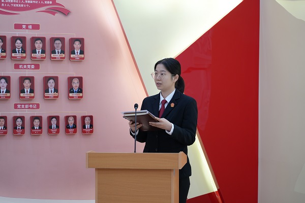 宣誓完毕后,干警代表陈颖和黄朵懿进行发言,她们结合各自工作实际,分享了对宪法精神的理解和司法为民的决心。