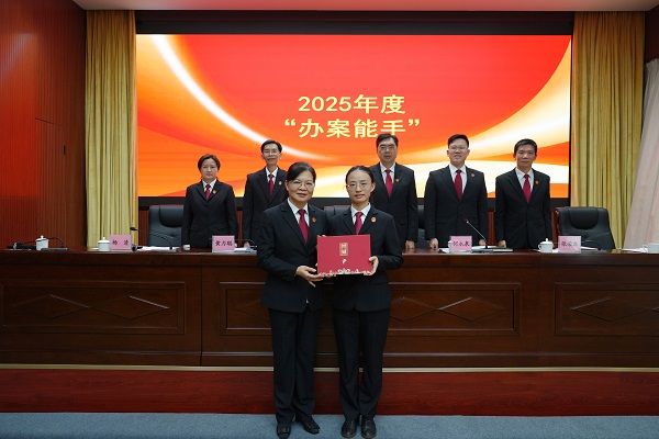 【彭赟同志获评2025年度“办案能手”】 党组书记、院长吴国红全面回顾了我院2025年工作情况,充分肯定过去一年各项工作取得的进展和成效,2025年我院各项工作实现新突破、取得新进展,全年审执结各类案件8749件,同比上升55.65%;法官人均结案486.1件,同比增加155.5件; “一降两升三优化”审判质效考核14项指标全部满分,审判综合质效位居全市第一。 回首过往,每一份成绩都凝聚着全院干警的不懈努力,新的一年,我们将笃行致远、再续荣光,吴国红院长对2026年工作提出了明确要求: 一是要持续强化政治建设,在筑牢忠诚上达到新高度。坚持不懈用党的创新理论武装头脑、指导实践、推动工作,巩固拓展主题教育成果,深刻领悟“两个确立”的决定性意义,坚决做到“两个维护”。 二是要主动服务中心大局,在保障发展上展现新作为。聚焦“十五五”开局之年各项任务,围绕大湾区建设、“百千万工程”、绿美生态建设等中心工作,充分发挥审判职能,建设更高水平的法治肇庆、平安鼎湖。 三是要始终坚持人民至上,在司法为民上取得新成效。牢固树立“如我在诉”意识,用心用情解决好人民群众在司法领域的急难愁盼问题。深化“枫桥式人民法庭”创建,主动融入基层社会治理,推动矛盾纠纷源头预防、实质化解。 四是要深化改革科技赋能,在提升质效上实现新突破。全面准确落实司法责任制,完善审判权力运行和监督机制。加强审判质量管理,优化案件阅核、类案检索等机制。深化智慧法院建设,推动人工智能与审判执行工作深度融合,切实做好电子卷宗随案生成与应用工作,培育打造更多具有鼎湖特色的司法改革品牌。 五是要全面从严管党治院,在锻造铁军上呈现新气象。压实全面从严治党主体责任,巩固深化纪律作风教育整治成果。严格执行防止干预司法“三个规定”等铁规禁令,以零容忍态度严惩司法腐败,努力锻造一支政治过硬、本领高强、作风优良的新时代法院铁军。 2026年是“十五五”规划的开局之年,站在新的历史方位,我院将锚定建设更高水平的法治中国的目标任务,以更坚实的理想信念、更有力的服务举措,凝心聚力、奋勇拼搏,持续深耕司法审判主业,践行司法为民宗旨、坚守公正司法底线,为“十五五”良好开局提供有力司法保障,以实际行动书写新时代法院工作的新篇章。