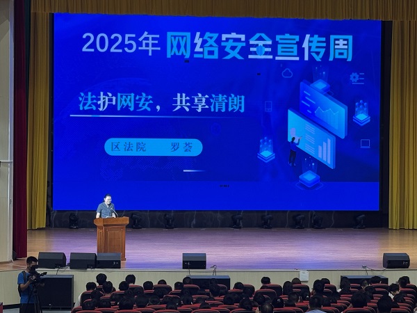为深入贯彻习近平总书记关于网络强国的重要思想,全面贯彻落实习近平总书记对网络安全和信息化工作作出的重要指示精神,以法院力量助力提升全民网络安全意识和防护技能,9月16日,2025年鼎湖区网络安全宣传周活动启动仪式在肇庆医学院(新区校区)举行,我院干警罗荟在开幕式上为现场900多名师生作网络安全专题宣讲。