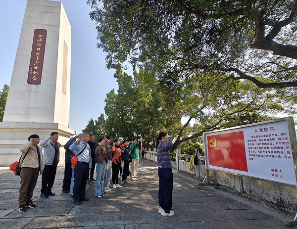 活动首站抵达庄严肃穆的顺德西海烈士陵园。在巍然屹立的烈士纪念碑前,面对鲜红的党旗,老党员们举起右拳,庄严宣誓“我志愿加入中国共产党,拥护党的纲领……”。随后,大家神情凝重,深切缅怀在“西海大捷”中英勇献身的抗日先烈,透过珍贵的历史图片与实物资料,那段硝烟弥漫、艰苦卓绝的岁月仿佛重现眼前。大家动情地表示,在革命先烈牺牲之地重温入党誓词,意义非凡,虽已退休,但作为共产党员的政治本色永不褪变,要始终做党的忠诚拥护者,为实现誓言奋斗终身。