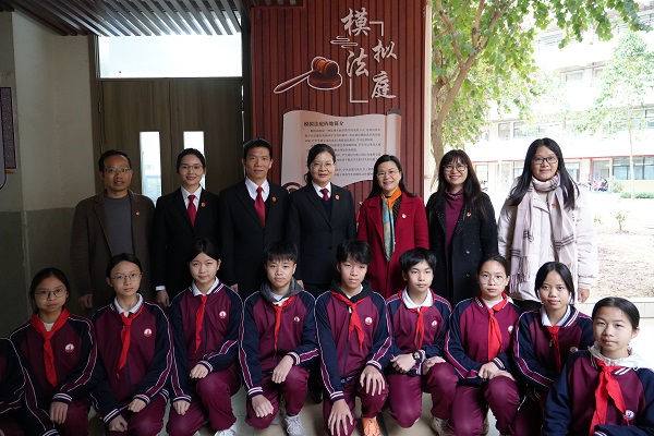 为全面贯彻落实习近平法治思想,进一步加强新时代未成年人法治教育,有效预防和减少青少年违法犯罪,1月21日,由我院与肇庆鼎湖第一实验学校共同建设的“模拟法庭”正式揭牌启用,为院校合作携手护航青少年健康成长夯实基础,有效赋能青少年法治素养提升。我院党组书记、院长吴国红,第一实验学校校长曾亚英等参加活动。